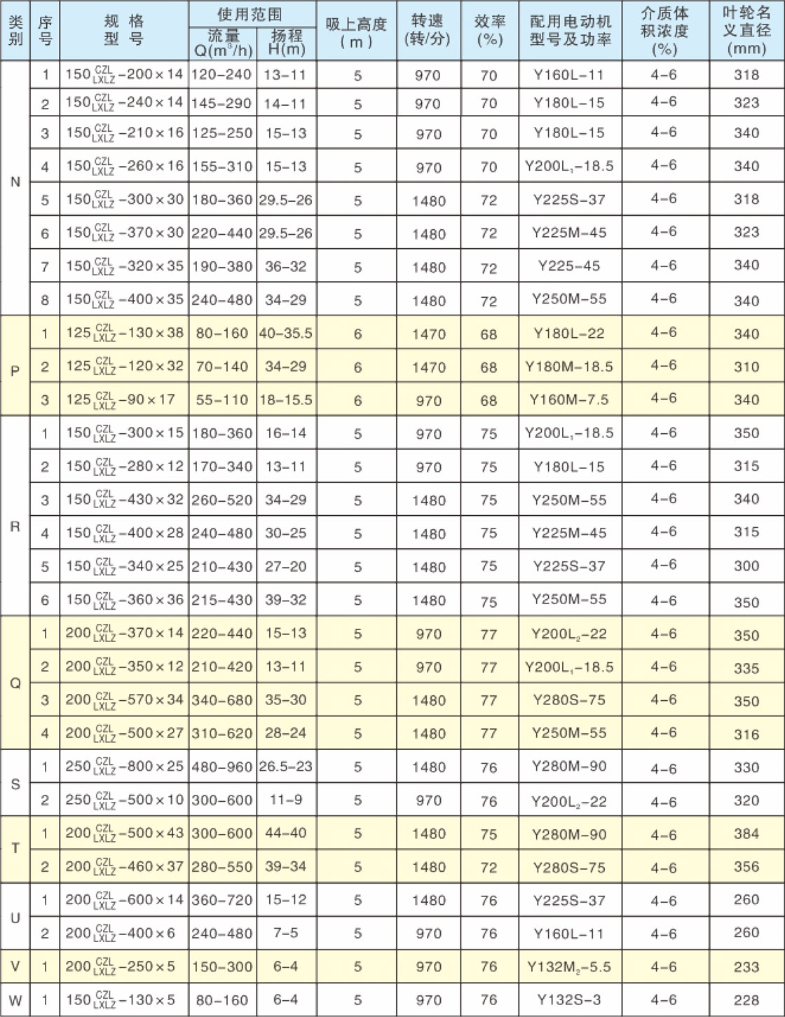 兩相流紙(zhǐ)漿泵主要性能(néng)參數表